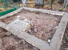 Периметр участка мы залили бетоном, предусмотрев специальный выступ. В дальнейшем он послужит основанием для надгробья.