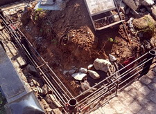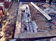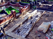 После того, как работа была проведена, клиент посчитал, что в задней части места захоронения требуется дополнительное укрепление. Мы вкрутили пять дополнительных свай, сварили новую сетку и залили ещё одну площадку, которая будет являться основанием для памятников.